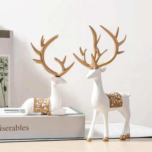 2pcs Elk Resin Statue Reindeer Sculpture Collectable Craft Deer Figurine Animal Figure for Party Desktop Housewarming Birthday
