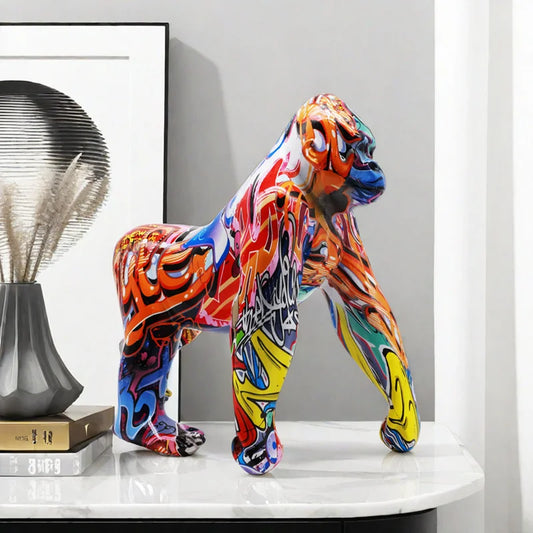Creative Painted Graffiti Colorful Gorilla Statue Creative Decorative Crafts Home Porch Wine Cabinet TV Cabinet Decoration Gift