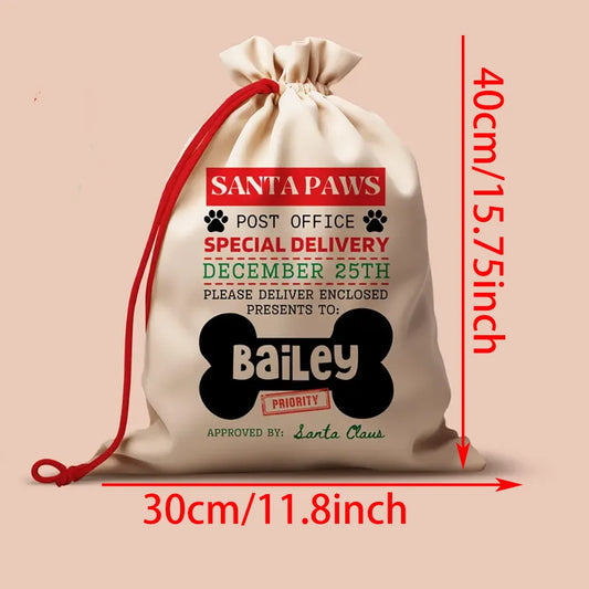 Personalized Christmas Gift Bag for Pets Santa Paws Delivery Bag Christma Holiday Dog Gift Sack Santa Claus Present Bag New Year