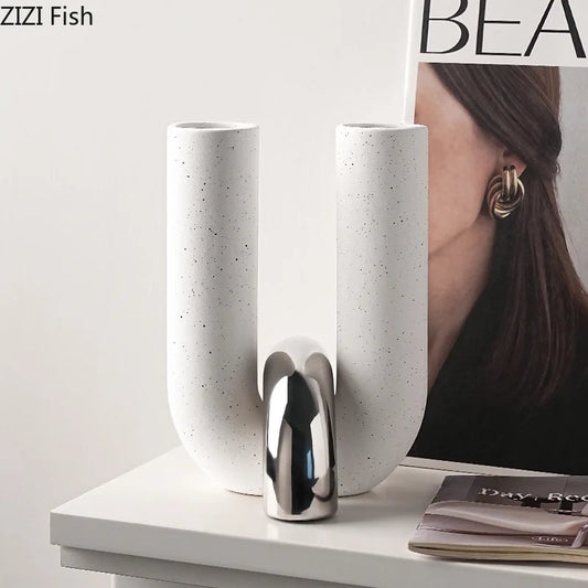 Creative U-shaped Ceramic Vase Flower Pots Desk Decoration Flowers Arrangement Porcelain Floral Vases Room Aesthetic Decor