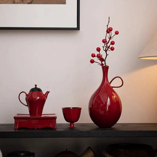 Elegant Chinese Red Vase for Living Room and Wedding Decor