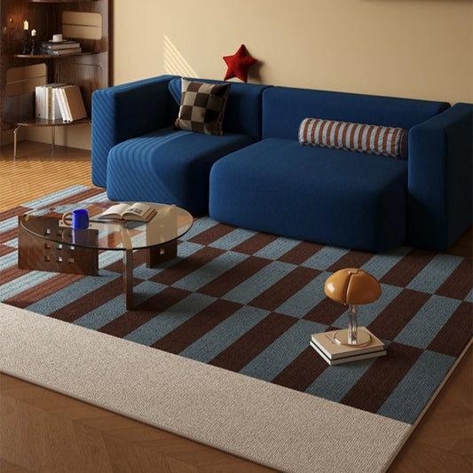 Korean Blue Plaid Striped Living Room Carpet Fashionable Bedroom Bedside Floor Mat Wipeable Coffee Table Cloakroom Rug Carpets카펫