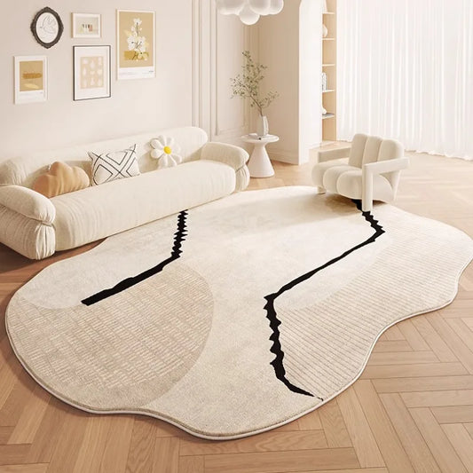 French Cream Style Home Decoration Carpet Minimalist Beige Bedroom Bedside Rug Irregular Geometric Pattern Mat Plush Soft Mats