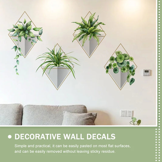 3D Self Adhesive Green Plants Wall Decals Potted Plants Wall Stickers Fresh Leaves Decorative Wall Art Nursery Wall