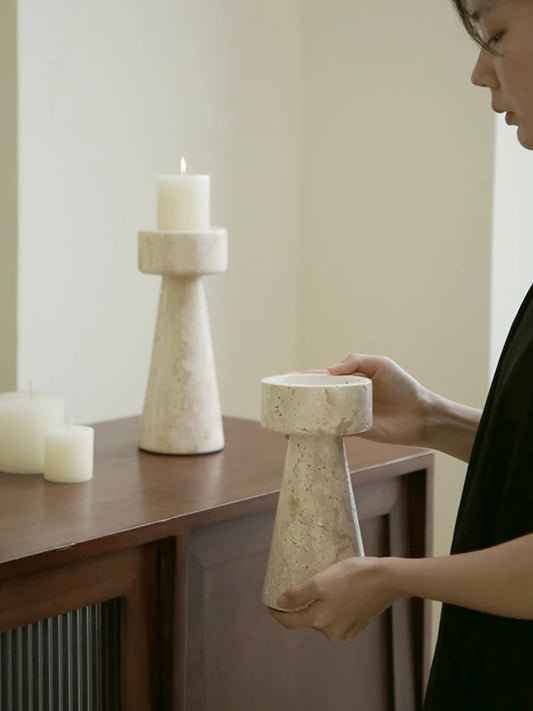 Bougeoir minimaliste en marbre pour mariage, bougeoir vintage en pierre de travertin pour décoration intérieure