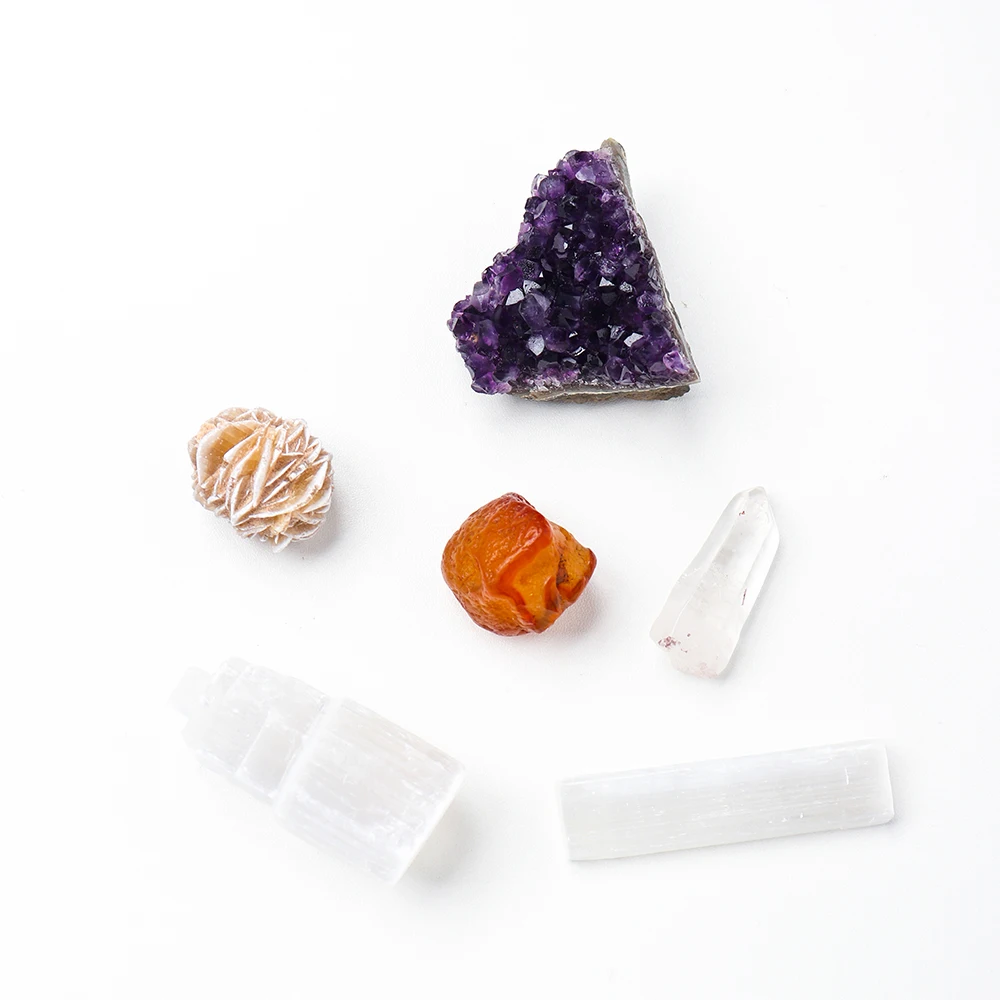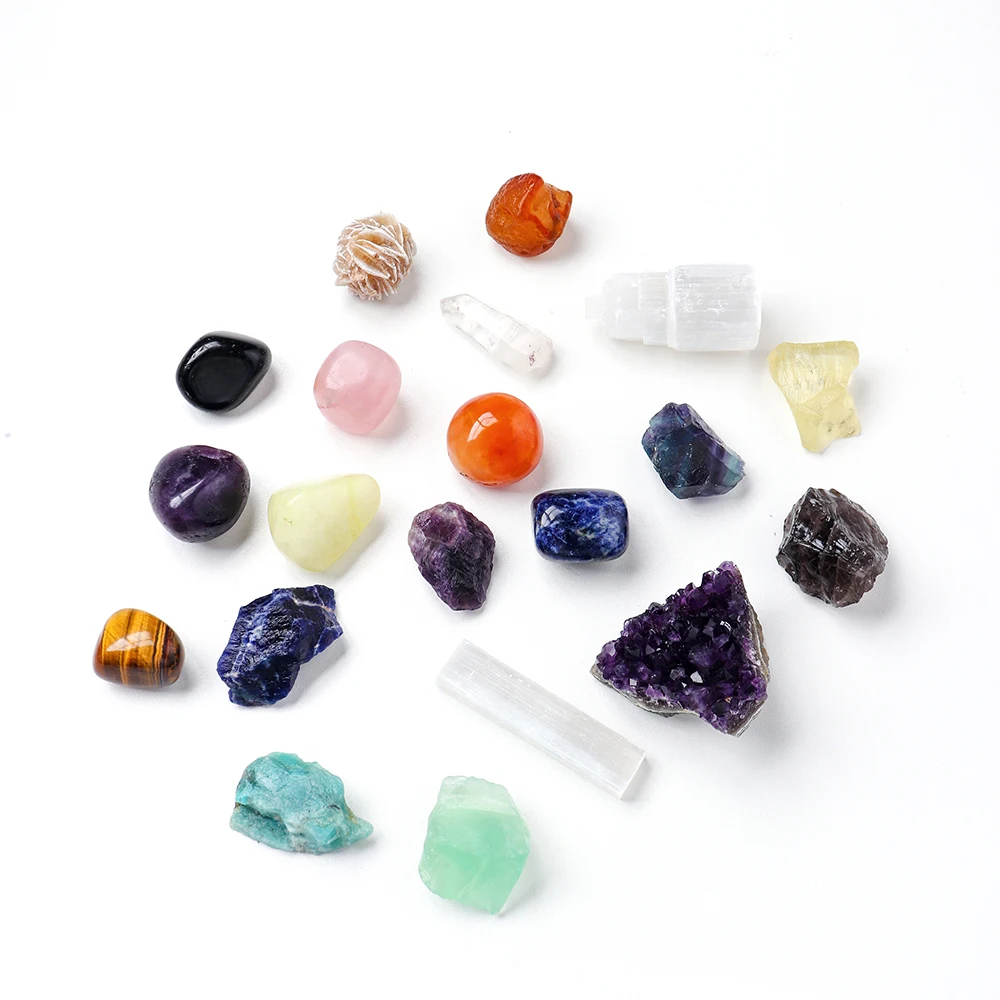 Coffret cadeau de 20 cristaux naturels : améthyste brute, pierre de soin, sélénite, ornement de santé
