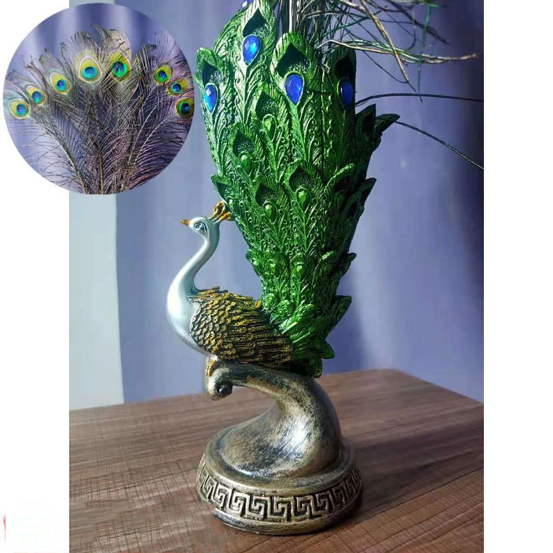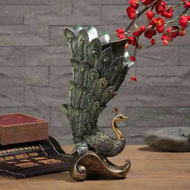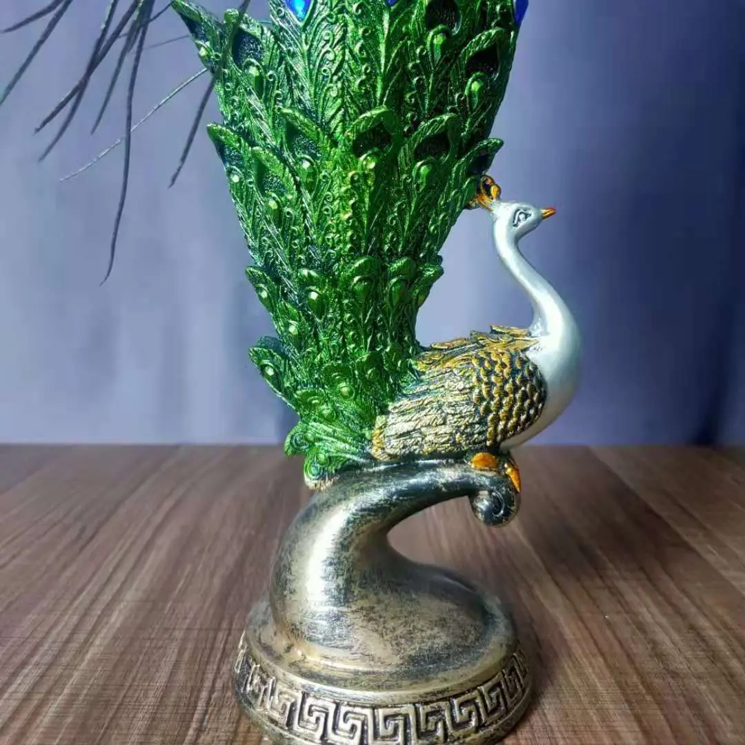 Vase décoratif Feng Shui en résine, motif plumes de paon, pour la maison, le salon, le meuble TV, le meuble à vin, la table, le bureau ou le bureau. Figurines artisanales.