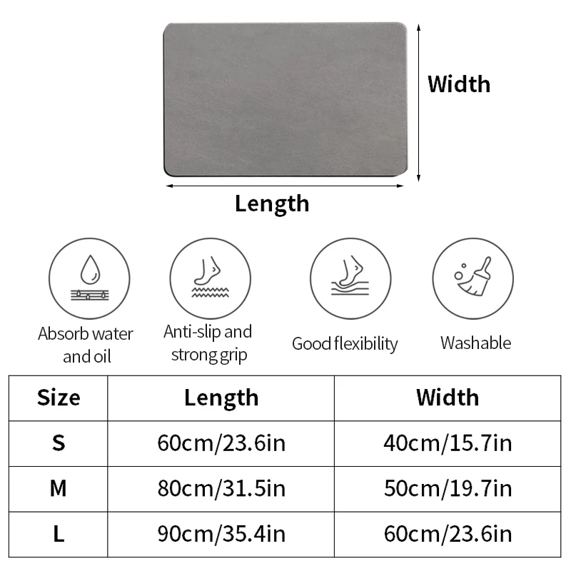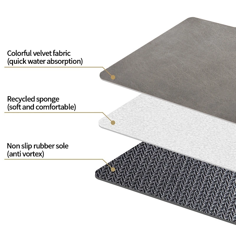 2Faux velveteen fabric surface can absorb moisture quickly; Foam absorbent layer can absorb water instantly and evaporate quickly.