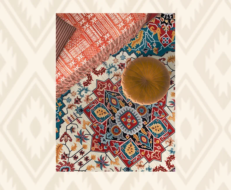 Carpet for Living Room Retro Bohemian Floral Abstract Large Area Rug Home Decoration Pastoral Ethnic Style Bedroom Mat ковер