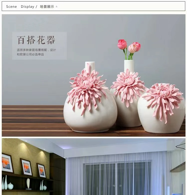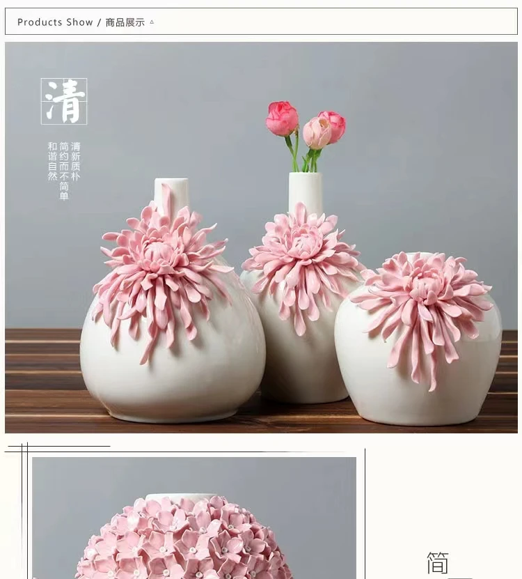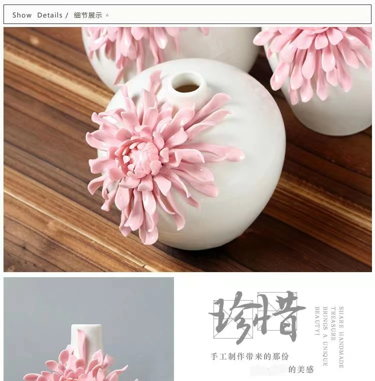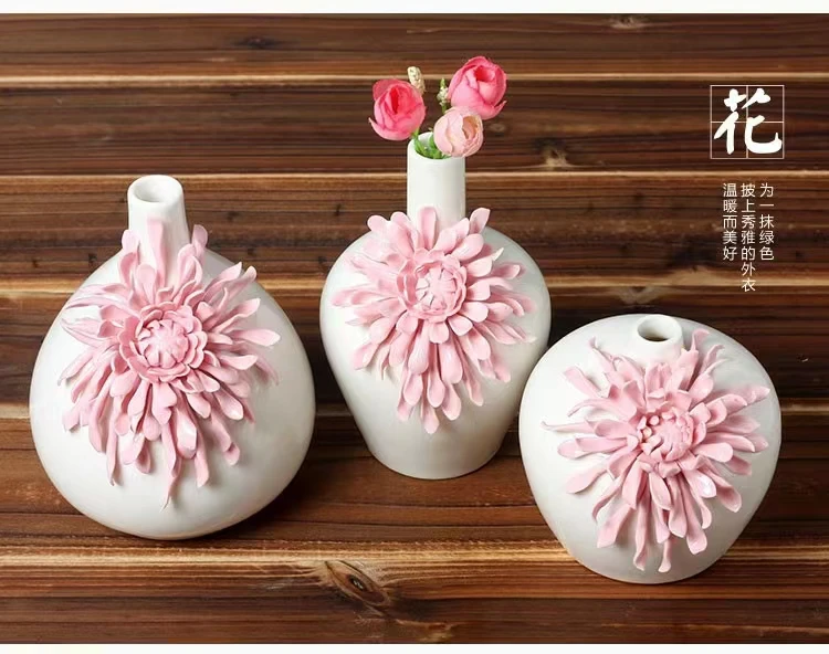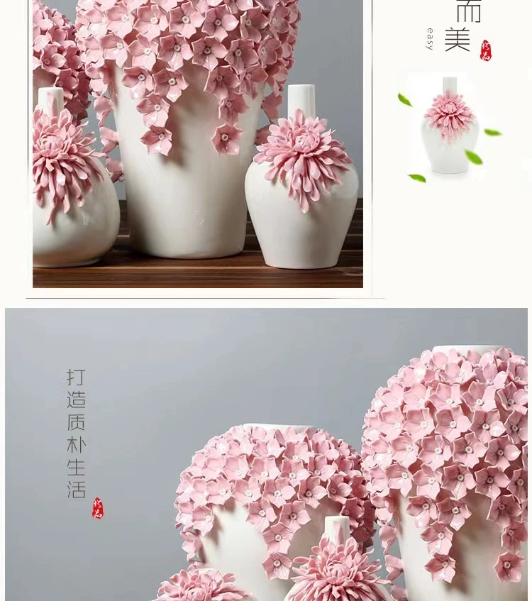 Dehua White Porcelain Handmade Flower Carving Pink Vase Decoration Living Room Decorations Floreros Decorativos Moderno