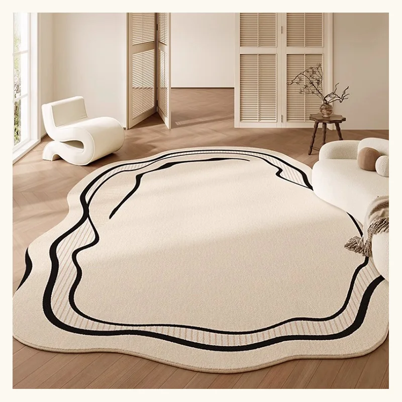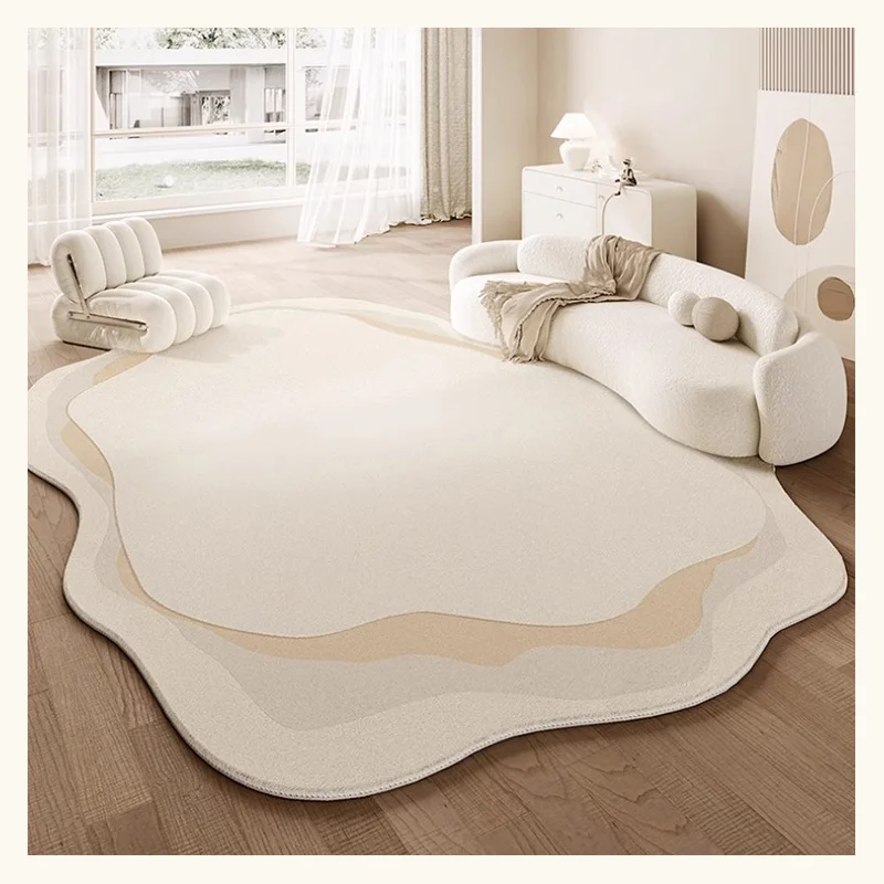 French Cream Style Home Decoration Carpet Minimalist Beige Bedroom Bedside Rug Irregular Geometric Pattern Mat Plush Soft Mats