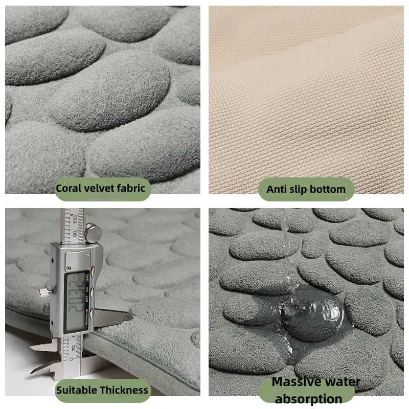 Mat Anti-slip Carpet Bath Rug Cobblestone Embossed Doormat Water Absorb Memory Cotton Entrance Mat For Wash Basin Bathtub Side