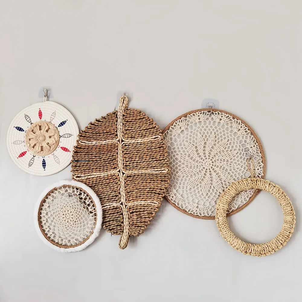 Nordic Style Straw Rattan Wall Decor, Round Rattan, Wall Basket, Decoration Rattan Crafts, Hanging Frame Ornament