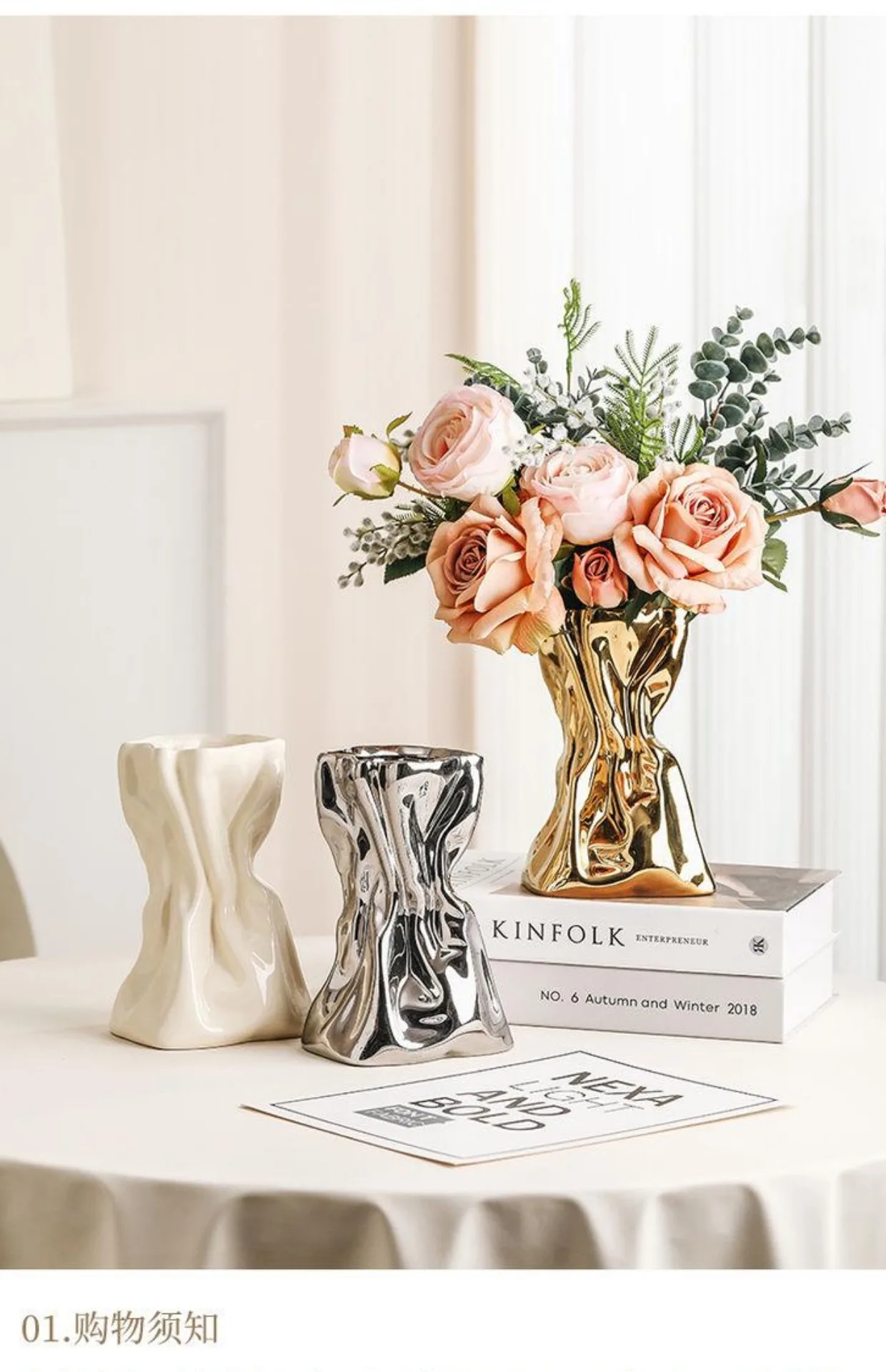 Rose special vase advanced simple ceramic creative vase Hydroponic flowers living room table TV cabinet home decoration vase